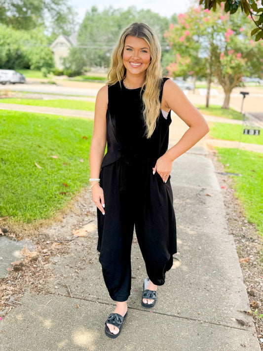 Blk Cinch Top & Pants Set