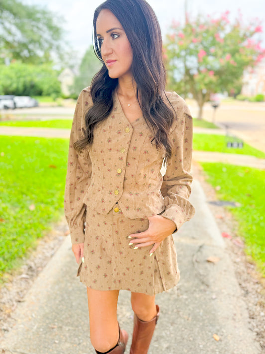 Floral Mocha Corduroy Set