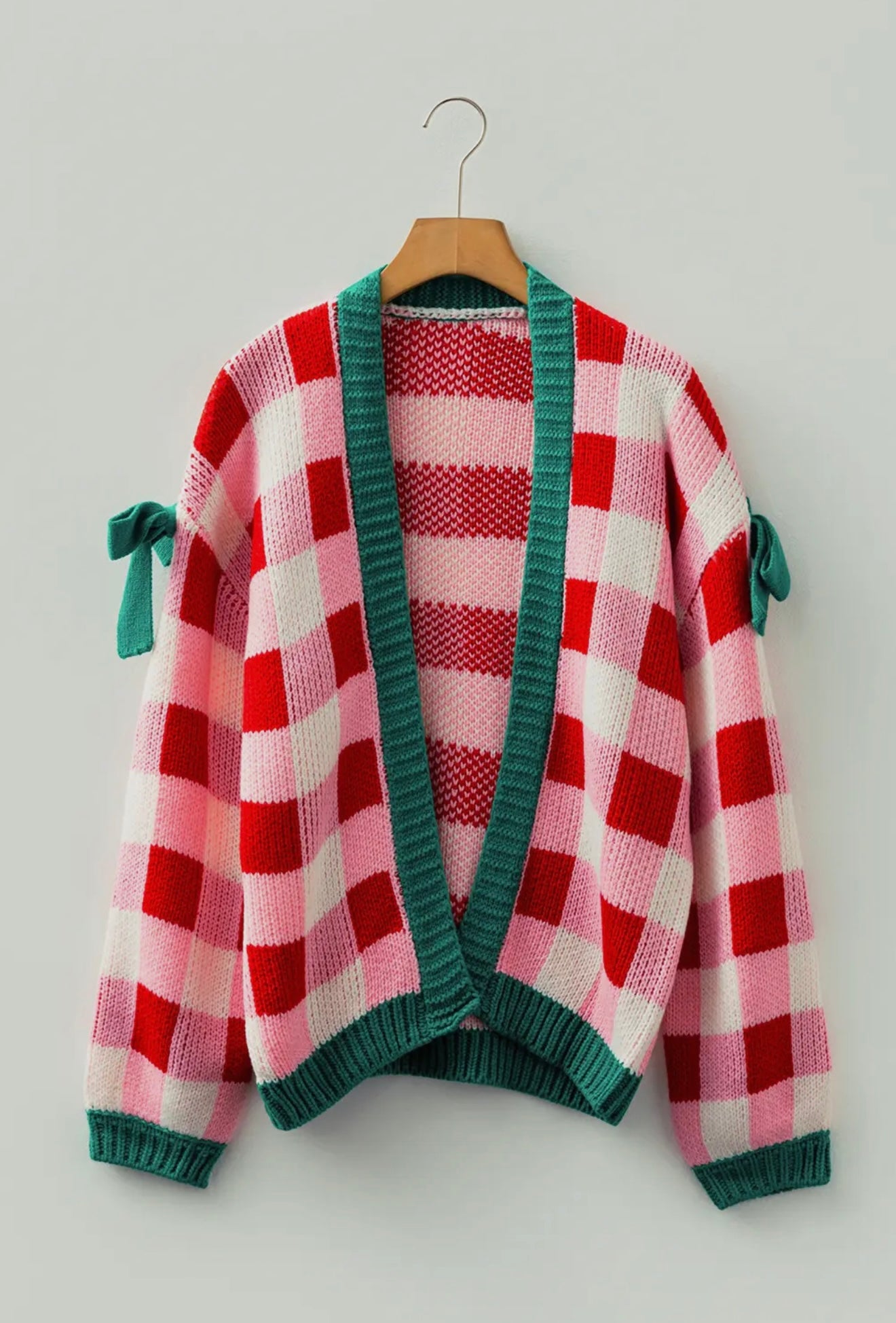 Plaid Knit Bow Knot Cardigan